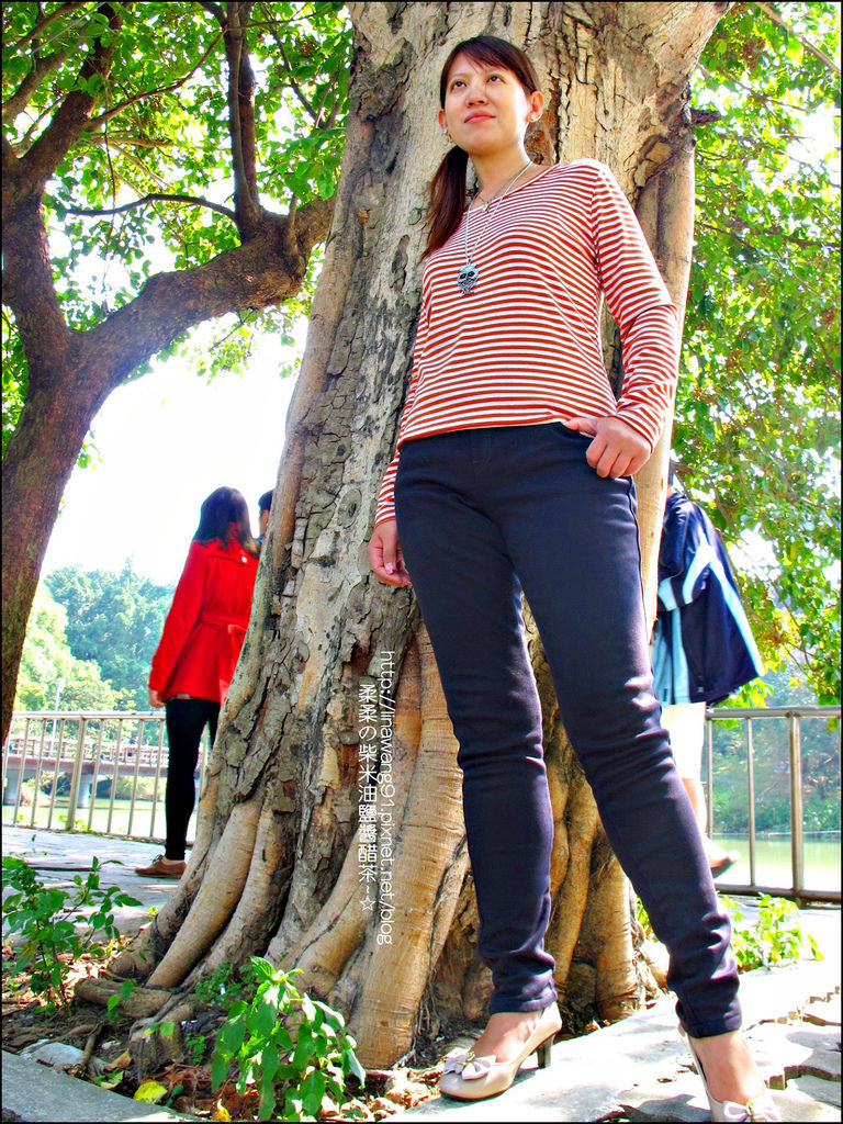 【體驗文】穿搭文【OB嚴選】頂級保暖的刷絨顯瘦褲~堅持瘦性.美麗繼續~「刷絨顯瘦搖粒絨窄管褲+皇家質感雙排釦毛呢腰綁帶長版外套+圓領橫條紋基本嚴選內搭磨毛棉T」