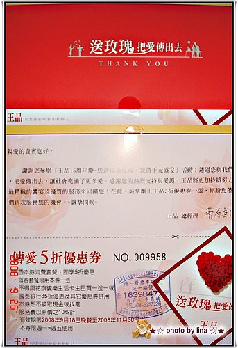 柔柔之前還有參加王品【花語祝福】王品套餐5折優惠券乙張/ 300 名 的活動,沒想到也抽中了,