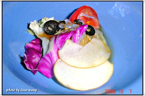 ▼ 宥爸爸的西式早餐生菜沙拉,跟昨天晚餐的前菜有點像。