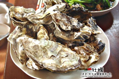 ▼ 「牡蠣」也就是台灣吃到的「蚵仔」啦,只是這些蚵仔都還沒剝殼,就直接這樣蒸來吃,柔柔是頭一次吃到,沒辨法...柔柔是都市人,只有吃過別人煎好的蚵仔煎。