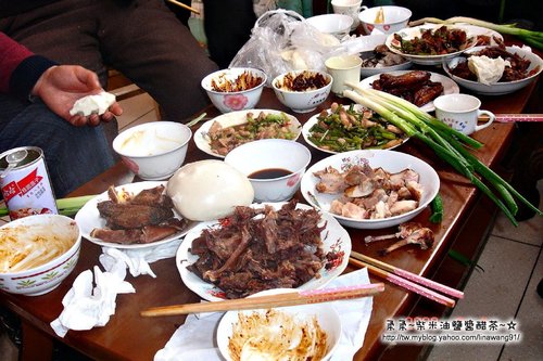 ▼ 吃飯,當然就要配酒囉,在大陸的男生有二種是必備的,就是喝酒+抽煙,而且每餐飯都一定要配酒,好像不喝就吃不下菜一樣。