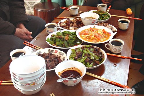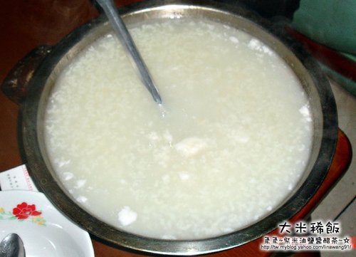 柔柔又不好意思叫人家專煮白米飯給我吃吧,而這一大盆的「大米稀飯」,還是大家都快吃完飯了,才送上來。