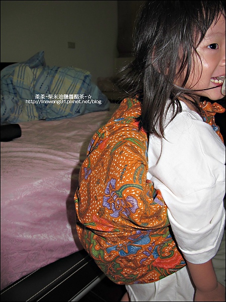 現在每次只要一到小宥宥想睡覺時,她就會以她的心情來選擇是要到公公、婆婆房間睡或是要到爸爸、媽媽房間睡,然後就會看著她背著一個大包伏找地方睡覺。