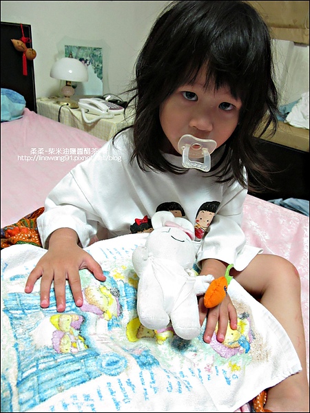 等到小宥宥漸漸長大時,柔柔就開始擔心小宥宥會不肯把兔子娃娃交出來清洗,但還好....愛乾淨的小宥宥,當看到柔柔在洗衣服時,自己就會跑去房間把兔子娃娃拿出來給我,跟我說「娃娃髒了,要洗澡」,柔柔也樂得幫她把娃娃洗乾淨。