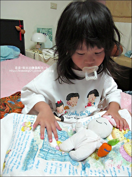 現在的小宥宥也因為有這些熟悉陪伴入睡的東西,小宥宥很快的就學會自己睡一個床,自己學著獨立睡著,也不再需要柔柔幫她拍小屁屁陪著睡覺,所以柔柔還滿感激小宥宥的安撫物-愛的枕頭、愛的娃娃