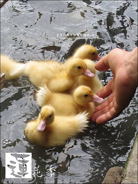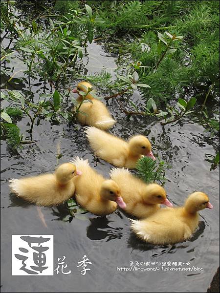 在竹棚底下有各式各樣的休閒椅子供遊客休息聊天,順便也可以品嚐古厝主人用心研製道地美味的蓮花小吃,中間的睡蓮池,三不無時還有黃色的小鴨鴨在蓮池內鑽進鑽出,超級可愛,這群小鴨鴨也完全不怕生,只要一伸手,小鴨鴨就全部圍過來想要吃東西,樂得小宥宥拿著飼料往池子丟,想吸引小鴨鴨過來。