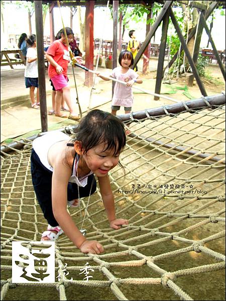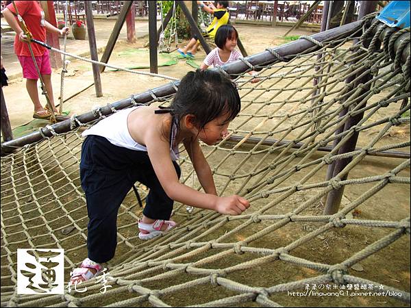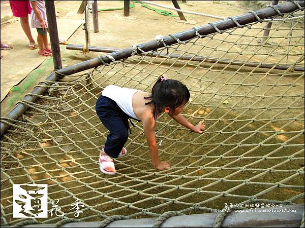 農場內還設有兒童遊戲區,有盪鞦韆、溜滑梯,好奇又好動的小宥宥,不管看到什麼遊樂器材,都會想辨法去玩,爬得速度可不輸其他的小朋友喔。